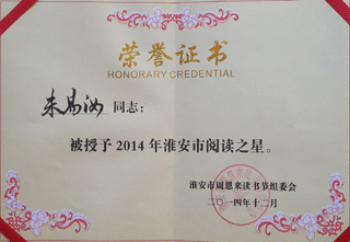 为了进一步推广全民阅读,周恩来读书节期间淮安市周恩来读书节组委会在全市范围内评选“读者之星”。我馆根据2014年1—10月的读者借阅册次统计显示数据,结合读者的阅读水平和阅读习惯,上报市读书节组委会,有4名同学荣获表彰,分别是县实验中学朱易汝,县实验小学黄艳茹、高旭,县外国语学校陈靓朱。