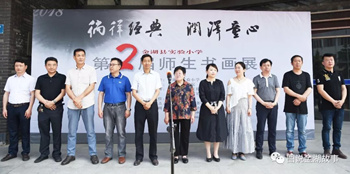 金湖县委宣传部副部长浦荣曹、县关工委主任胡进、团县委书记李丹、县教育局副局长孙德军、教育局基教科科长李道新、体卫艺科科长嵇松梅、县图书馆馆长陈祥龙、县美协主席朱生剑、县书协主席植晓春、县书画院院长王跃岚、实验小学校长戴玉华等出席开幕式。