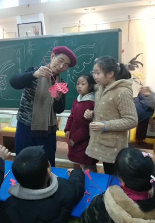 为丰富孩子们冬天里的假日生活,金湖县图书馆每年都会举办“缤纷冬日”系列活动,今年,该馆利用周六时间免费举办金湖剪纸培训班,邀请金湖县文化名人、工艺美术大师陆功勋和金湖剪纸传承人陆文沪向小朋友们传授剪纸技艺,以此传承非遗文化,陶冶青少年情操,培训孩子从小动手动脑的能力。此类培训班已累计举办10期。第10期培训班上,陆功勋、陆文沪父女俩还专门传授孩子们剪立体“春”字技法,喜迎2019年新春佳节的到来。
