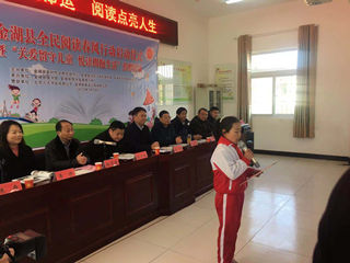 周广峰表示,将进一步动员社会力量帮扶关爱重点群体,特别是农村留守儿童,为青少年学习和阅读提供帮助;将广泛开展阅读活动,依托新时代文明实践中心(所、站)和图书馆、农家书屋、实体书店、具备条件的公共窗口单位以及阅读空间等阵地,以“奋进新时代·书香润金湖”为主题,以培育和践行社会主义核心价值观,培养志愿服务精神为重点,结合庆祝新中国成立70周年、建县60周年,把全民阅读活动搞得红红火火;将加强阅读志愿服务队伍建设,吸引教师、作家、科技工作者、新闻工作者、农村退休干部、老教师等加入阅读志愿服务队伍,深入基层、深入农村,提供阅读志愿服务;将援建共建阅读阵地,整合各类资源,以“看看书吧”建设为抓手,建立长效机制,加快补齐全民阅读服务短板,让城乡居民阅读更加便利。周广峰还勉励银涂镇唐港小学学生珍惜年少青春,养成热爱读书好习惯,通过读书涵养人生,增强本领,将来为建设美丽中国贡献力量。