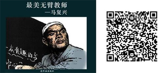 “最美师德,感恩师恩”主题连环画荐读活动,推荐优秀教师先进事迹连环画《最美无臂教师——马复兴》。马复兴,男,回族,1959年3月生,中共党员,青海省西宁市湟中县汉东乡下麻尔村小学教师,青海省残疾人自强模范,西宁市优秀教师,多次被授予湟中县教育系统先进工作者、优秀班主任、优秀教师等荣誉称号。2012年,他获得了“全国最美乡村教师”称号。因为童年的一次意外,马复失去了宝贵的双手,落下了终身残疾。凭借自己顽强的毅力,他成为了家乡村里第一个高中毕业生。1981年,马复兴开始在下麻尔村小学教书。虽然马复兴没有双手,却在三尺的讲台上耕耘了近40个春秋,字写得工整,画画得漂亮,用小小的黑板让身处青藏高原农村的孩子们看到了外面的精彩世界。