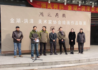 “湖风荷韵”——金湖洪泽美术家协会绘画作品展由中共金湖县委宣传部、洪泽区委宣传部、金湖县文广新局、洪泽区文广新局、金湖县国土资源局、金湖县文联、洪泽区文联共同主办,金湖、洪泽两地美术家协会共同承办。得到了两地100位绘画爱好者的共同响应,他们将自己对家乡对人民对生活的满腔热爱和对艺术的孜孜追求倾注笔端,跃然纸上,受到广大市民的啧啧称赞;金湖县荷都诗书画院的书法家们更是激情澎湃,现场为市民书写春联500多幅;县图书馆工作人员现场向市民免费赠送生活健康类杂志1000多份。活动现场气氛热烈,受到了读者的一致好评。