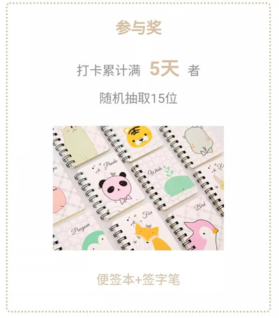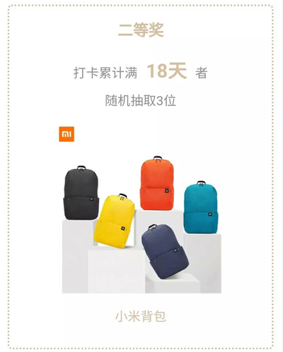 1、打卡活动结束后,程序将在满足奖项条件的用户中自动随机抽奖,开奖时间:2020年5月11日12:00。
