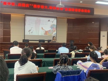 “蓝脸的窦尔敦盗御马,红脸的关公战长沙。黄脸的典韦,白脸的曹操,黑脸的张飞叫喳喳......”当一段京剧唱腔在金湖县图书馆五楼报告厅响起,孩子和家长们很快融入其中。中国戏曲是中华民族艺术殿堂的一颗璀璨明珠,而脸谱则是京剧艺术里的“表情符号”,它是中国传统文化内涵视觉化的体现,极具民族文化特色,有着独特的魅力。从戏剧的角度来讲,它是性格化的;从美术的角度来看,它是图案式的。在漫长的岁月里,戏曲脸谱是随着戏曲的孕育成熟,逐渐形成,并以谱式的方法相对固定下来。