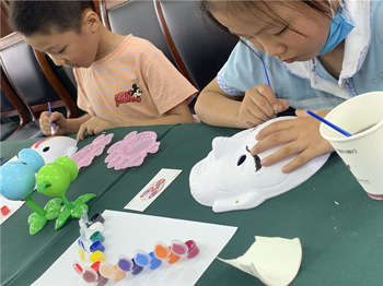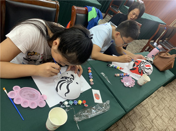 通过互动交流,来自金湖县实验小学二(8)班姜润泽小朋友和妈妈马明玉一起,在制作好一张“京剧脸谱”后显得很兴奋,她说:“通过学习,既了解了京剧相关常识,还学会了京剧脸谱的简单制作,我很开心。”